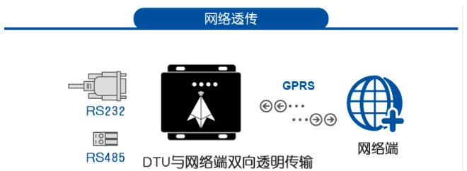 支持網絡透傳——即透明(míng)傳輸,4G DTU接收什(sh↓én)麽就(jiù)發送什(shén)麽,快(kuài)速連接串口設備和(hé)網絡服務器(qì),将串口數(shù)據快(kuài)速轉成4G傳輸。
