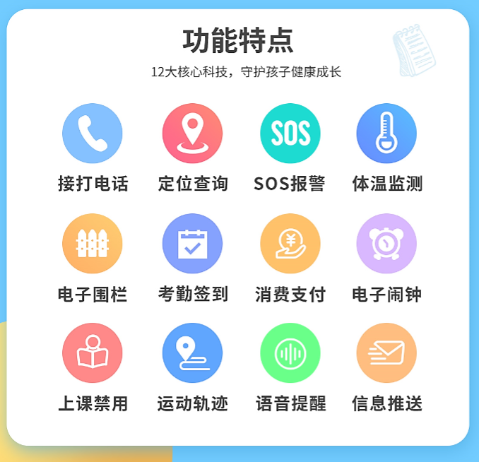 智能(néng)電(diàn)子(zǐ)學生(shēng)卡,也(yě)叫智能(néng)電(diàn)子(zǐ)學生(shēσng)證。自(zì)從(cóng)智能(néng)手機(jī)普及後,太多(duō)孩子(zǐ)沉迷遊戲,導緻學業(yè)荒廢,過早近(jìn)視(shì),暴力傾向,總之手機(jī) 對(duì)孩子(zǐ)的(de)身(shēn)心健康會(huì)造成很(hěn)大(dà)的(de)到(dào)毒害。£智能(néng)電(diàn)子(zǐ)學生(shēng)卡,它相(xiàng)當于學生(shēng)的(de)簡易版“手機(jī)”,它 具有(yǒu)手機(jī)的(de)基本功能(néng),但(dàn)它不(bù)同于手機(jī),隻具有(yǒu)手機(j≥ī)的(de)基本通(tōng)話(huà)功能(néng),沒有(yǒu)遊戲與其它的(de)娛樂(yuè)功能(néng)。通(tōng)常情況下(xià),它除了 (le)接打電(diàn)話(huà)外(wài),具有(yǒu)定位功能(néng),家(jiā)長(cháng)可(kě✘)通(tōng)過手機(jī)端APP或小(xiǎo)程序來(lái)查看(kàn)孩子(zǐ)的(de)位置以及行(xíng)駛軌迹,具有(yǒ₩u)SOS報(bào)警功能(néng),孩子(zǐ)遇到(dào)意外(wài)安全情況時(shí),可(kě)長(cháng)按SOS報(bào)警鍵,可(kě)進行(xíng)報(bào)警。除了(le)這(zhè)些(xiē)功能(néng)外(wài),它還(hái)有(yǒu)其它的(de→)一(yī)些(xiē)功能(néng)。