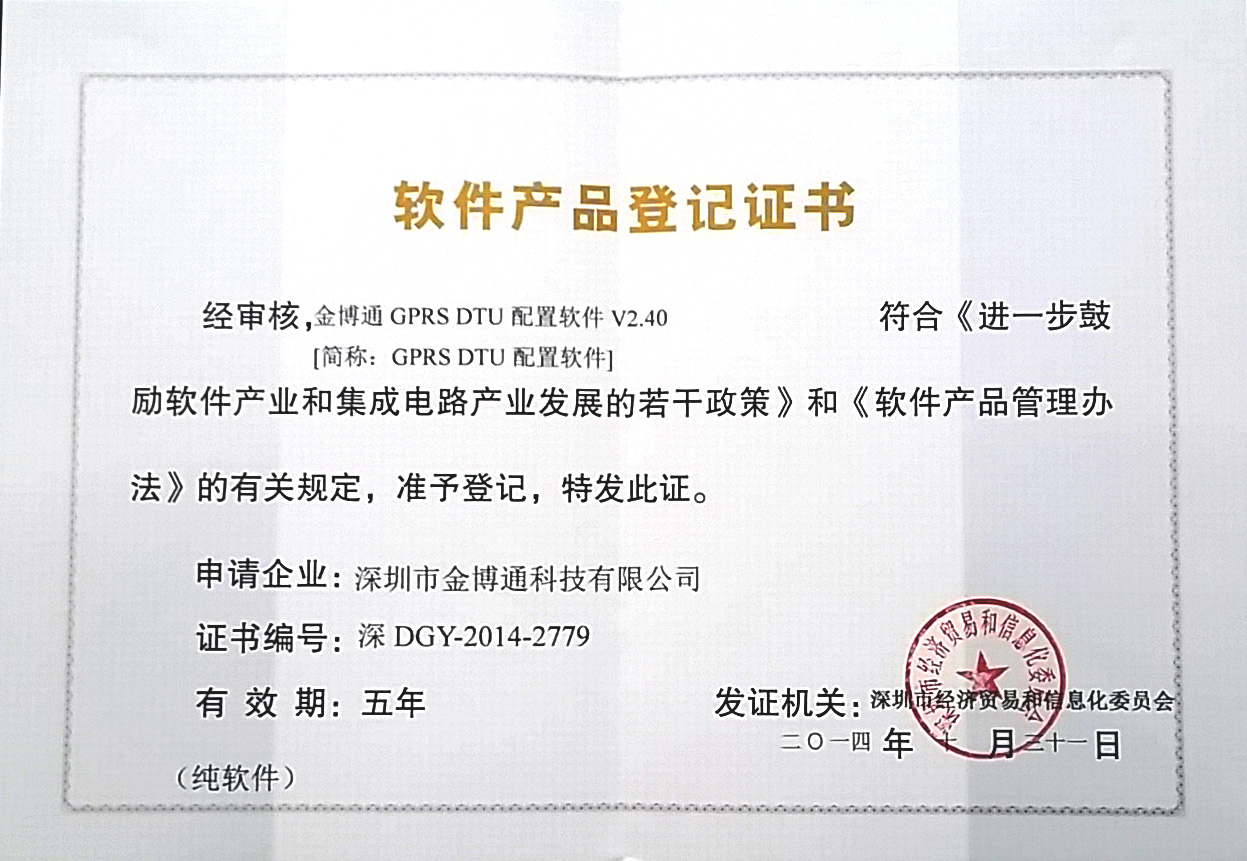 DTU配置軟件(jiàn)産品登記證書(shū)